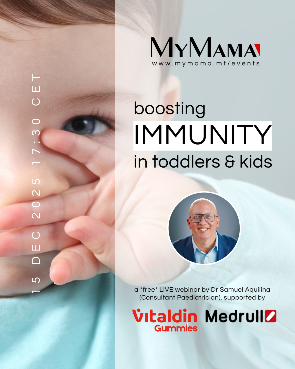 Join our next FREE webinar Boosting Immunity in Toddlers & Kids, where Dr Samuel Aquilina, Consultant Paediatrican, will guides you through simple ways to strengthen your child’s immunity and reduce the cycle of illnesses that tend to sweep through families. This webinar is supported by Vitaldin and Medrull.