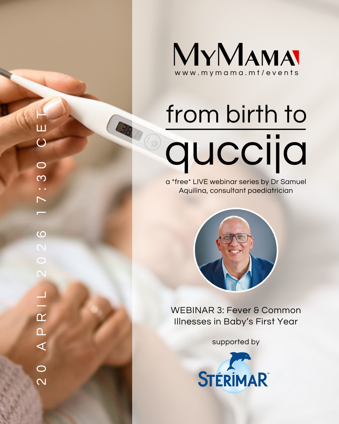 Join the third webinar of the 'from birth to quċċija' *FREE* series by our paediatrician Dr Samuel Aquilina to familiarise yourself with fever & common illnesses in baby's first year.